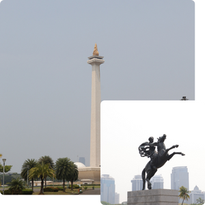 Sebuah ikon dan landmark yang sangat terkenal di Jakarta, ibu kota Indonesia. Monas terletak di pusat kota Jakarta, tepatnya di tengah Lapangan Merdeka. Monumen ini memiliki makna sejarah dan simbolisme yang mendalam bagi bangsa Indonesia.Monas memiliki tinggi sekitar 132 meter dan dihiasi dengan puncak yang berbentuk lidah api berwarna emas, melambangkan semangat perjuangan dan kebebasan.